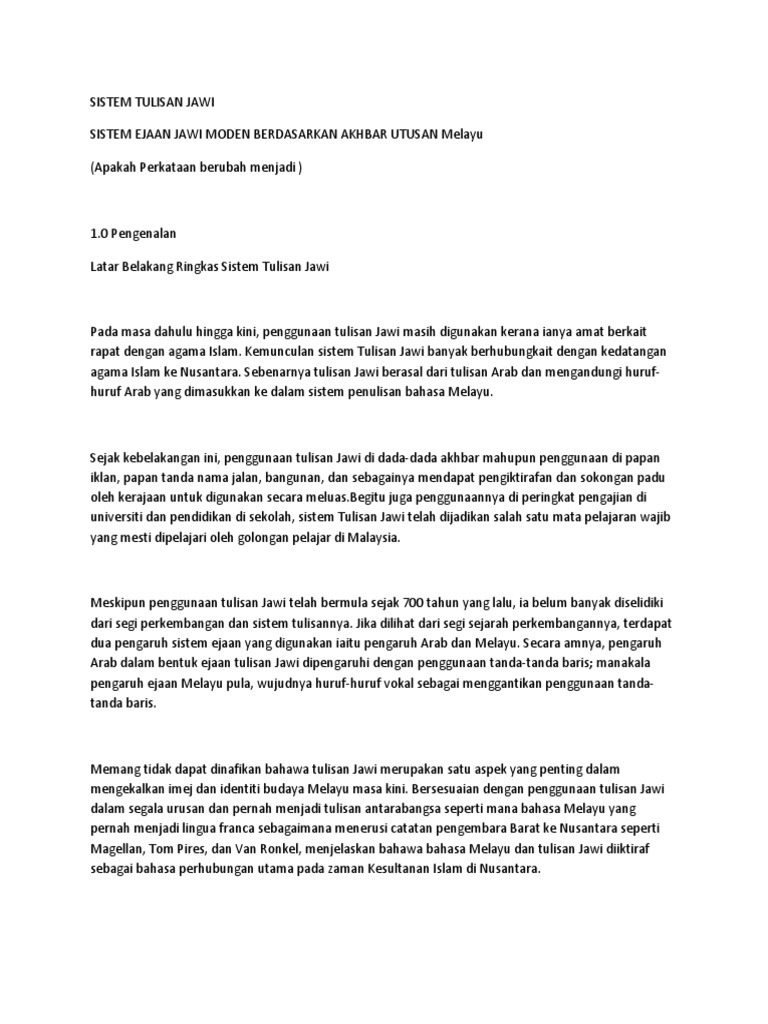 Dalam penyusunan Daftar ini buku-buku penting yang digunakan sebagai rujukan termasuklah Daftar Ejaan Melayu Zaba Daftar Ejaan Rumi Bahasa Melayu DBP Kamus Dewan Pedoman Transliterasi Huruf Arab ke Huruf Rumi dan. Apa telah terjadi kepada Jawi. Oleh itu ejaan Jawi dalam Surat Sultan Zainal Abidin III telah dijadikan sebagai asas perbandingan kerana bahan ini bersesuaian dalam usaha mengesan dan mengenal pasti bentuk ejaan Jawi yang pernah digunakan pada peringkat awal abad ke-20 di Alam Melayu sebelum perubahan yang membawa kepada sistem ejaan Jawi yang digunakan kini.